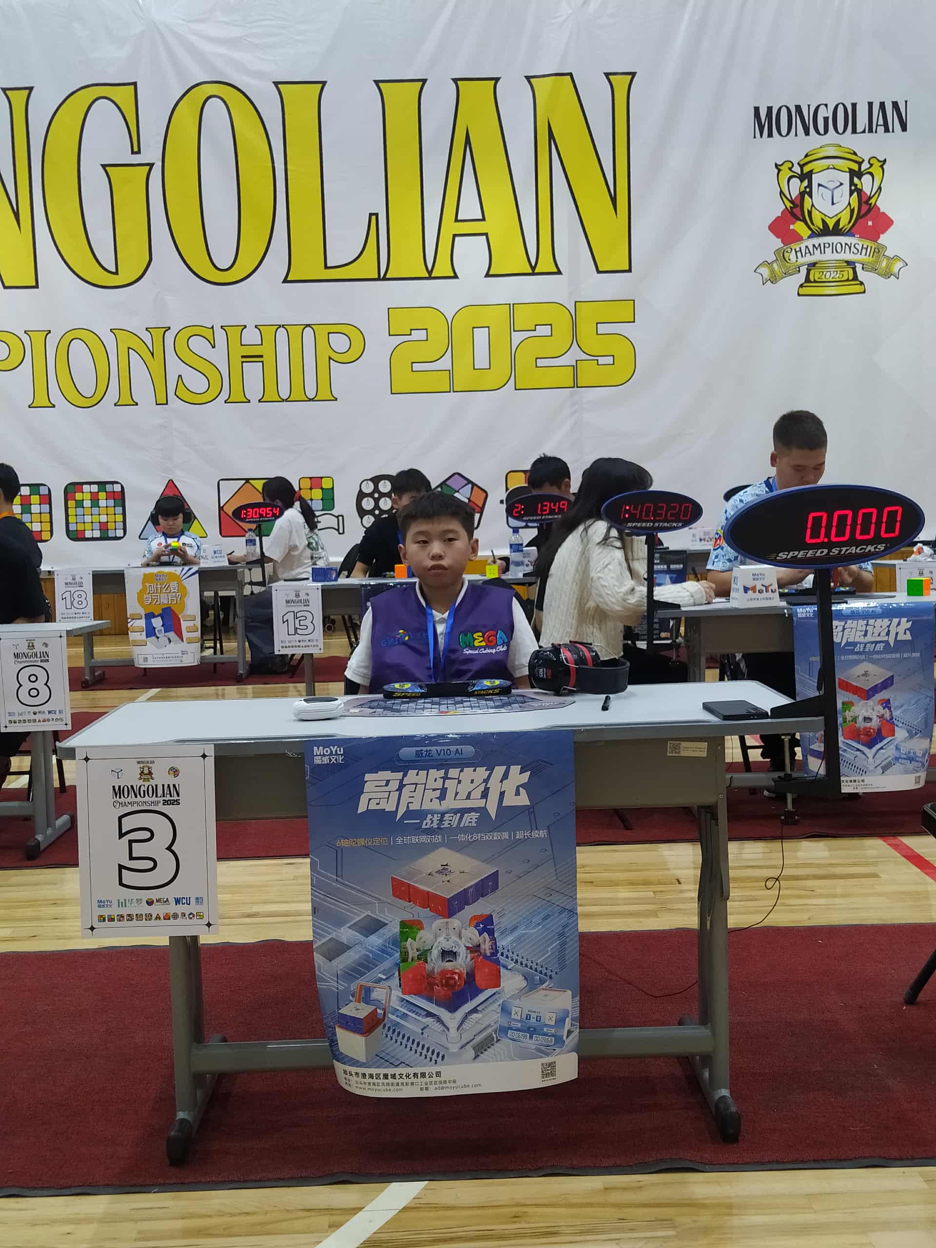 | Region | WCA ID | Gender | Competitions | Completed Solves | Mongolia | 2019BATJ01 | Male | 26 | 761 |