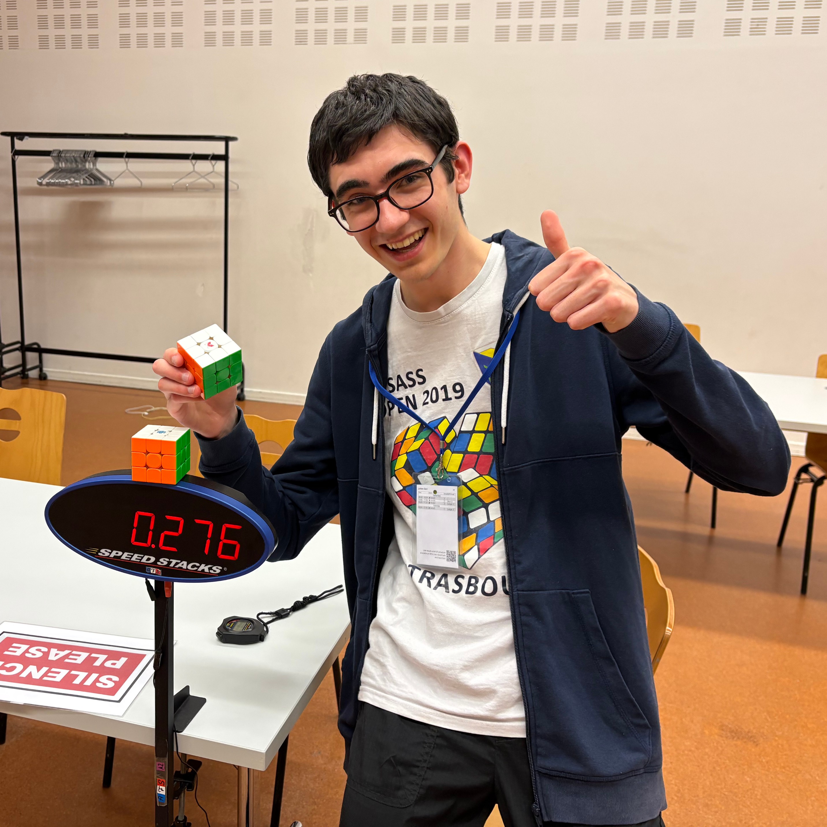 | Region | WCA ID | Gender | Competitions | Completed Solves | France | 2019ZERR01 | Male | 3 | 40 |