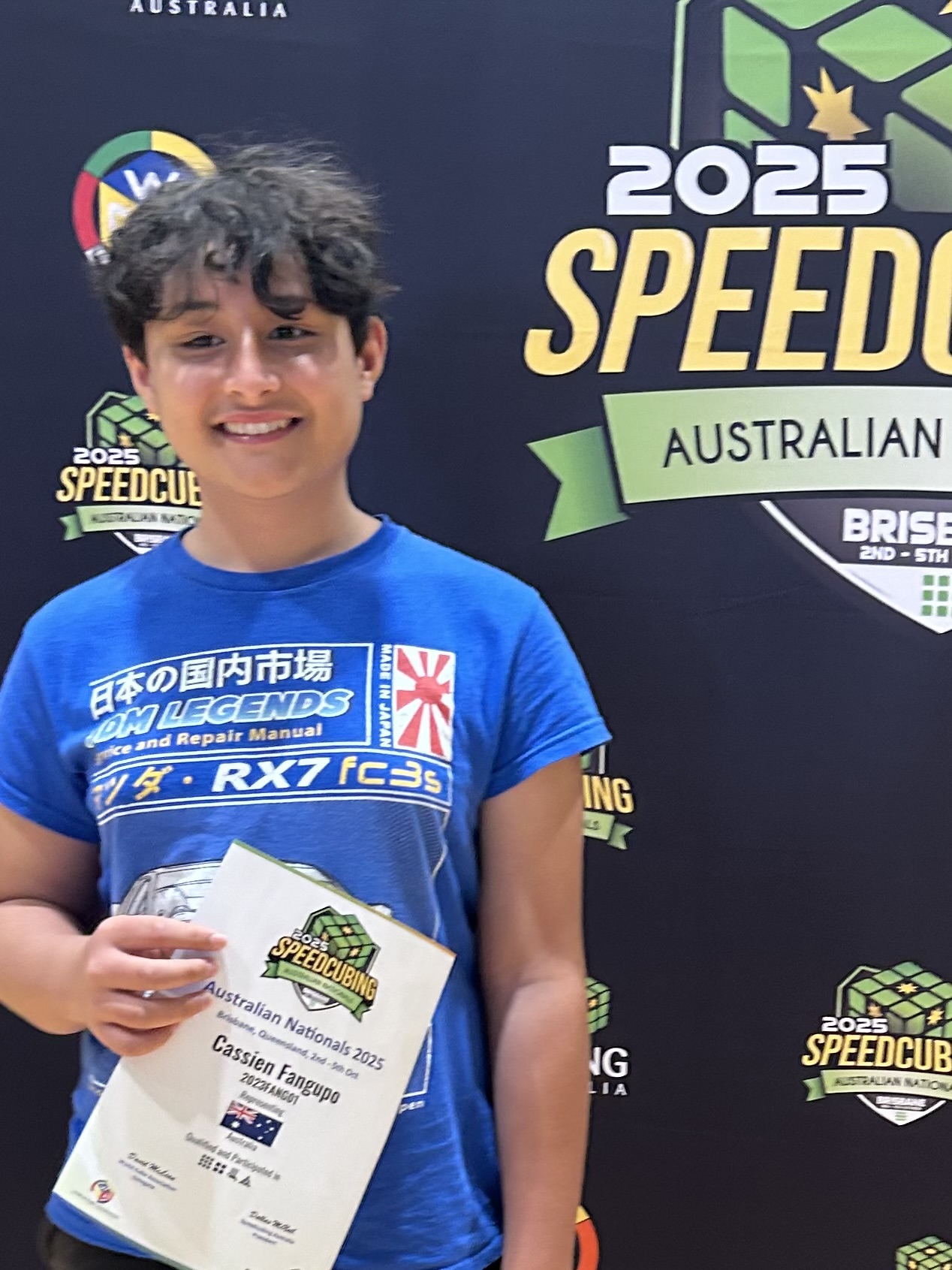 | Region | WCA ID | Gender | Competitions | Completed Solves | Australia | 2023FANG01 | Male | 5 | 97 |