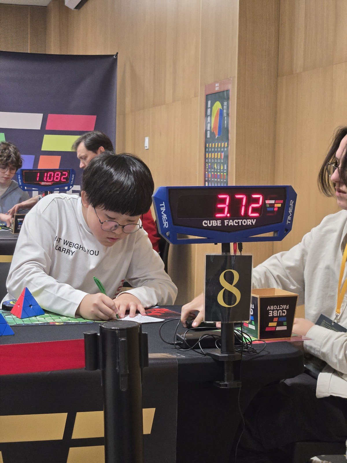 | Rubik's WCA World Championship 2023 | First round | 636 | 5.95 | 7.25 | 8.27 | 9.16 | 7.03 | 6.44 | 5.95 | ||