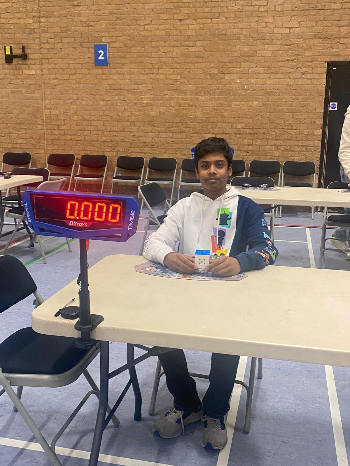 | Region | WCA ID | Gender | Competitions | Completed Solves | United Kingdom | 2023SINH03 | Male | 2 | 34 |