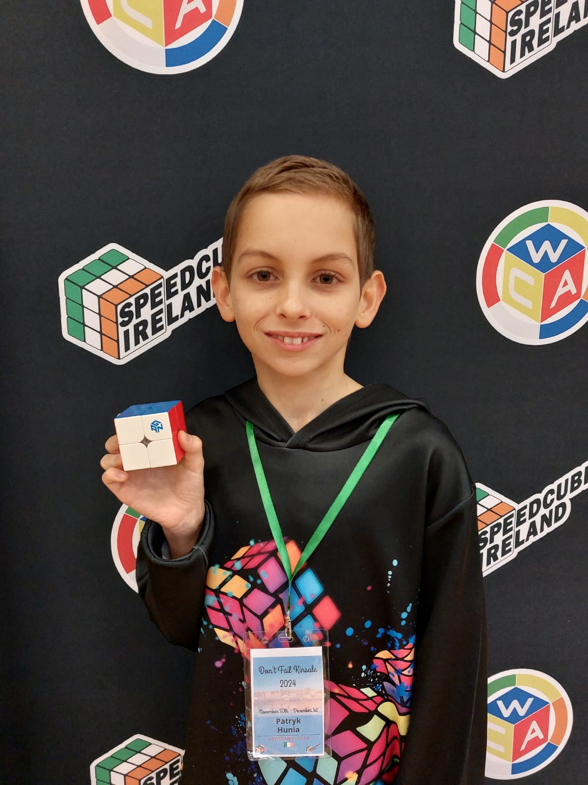 | Region | WCA ID | Gender | Competitions | Completed Solves | Ireland | 2024HUNI01 | Male | 2 | 42 |