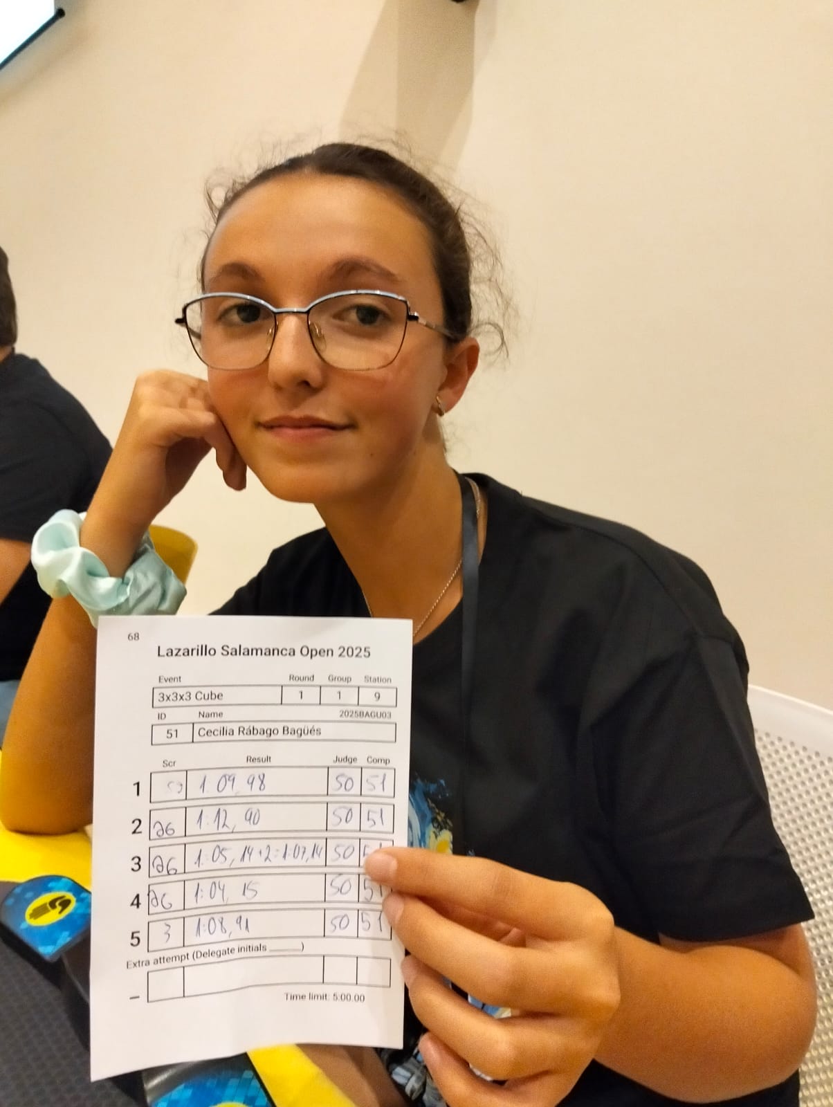 | Region | WCA ID | Gender | Competitions | Completed Solves | Spain | 2025BAGU03 | Female | 5 | 90 |