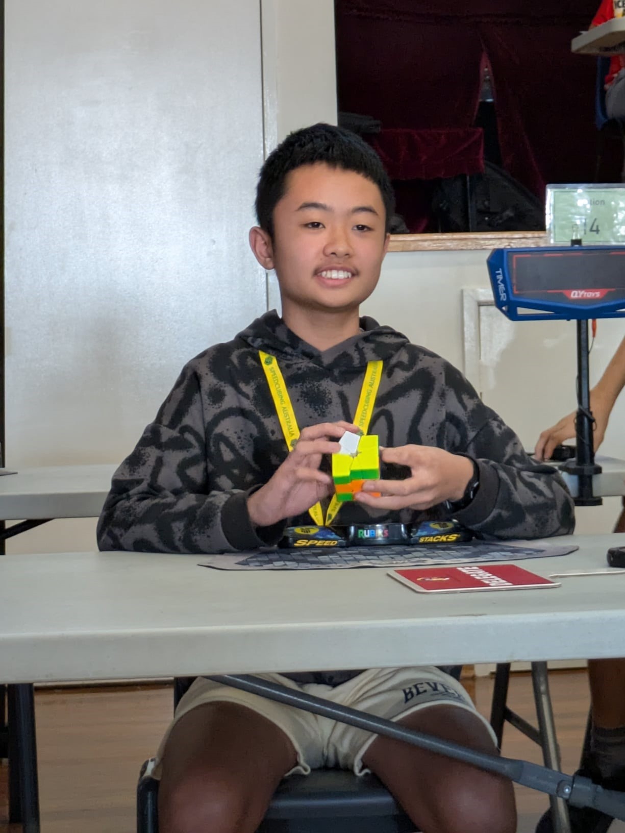 | Region | WCA ID | Gender | Competitions | Completed Solves | Australia | 2025LEEJ20 | Male | 2 | 70 |