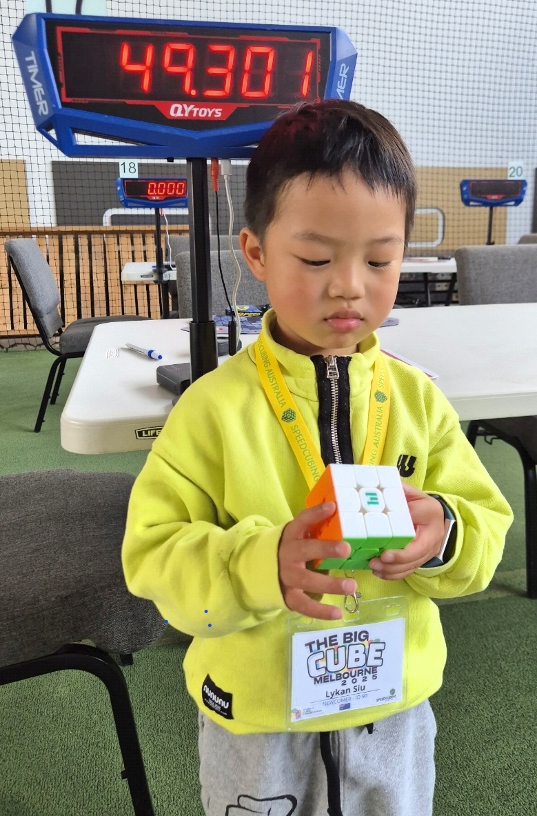 | Region | WCA ID | Gender | Competitions | Completed Solves | Australia | 2025SIUL01 | Male | 1 | 5 |