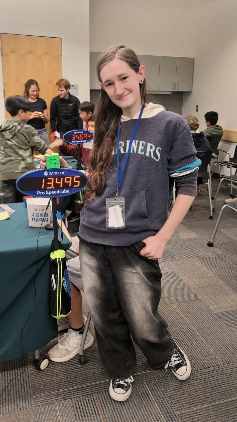 | Region | WCA ID | Gender | Competitions | Completed Solves | United States | 2025STOU03 | Female | 5 | 138 |